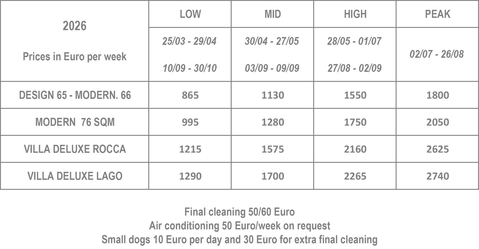 Each villa is fully furnished and equipped: ergonomic designer kitchens, complete appliances, bed linen, towels, toiletries and beds already prepared. Everything is arranged with care, so you can continue your daily life without interruption, just as you would at home.